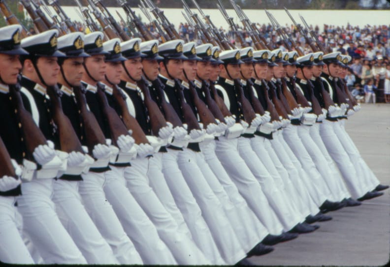 Archival Images San Salvador, El Salvador, 1982 Elections.Santiago, Chile 1983Military Parade hosted by Augusto Pinochet